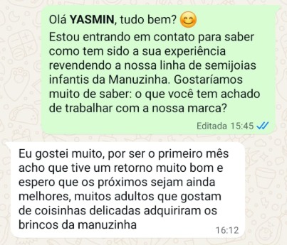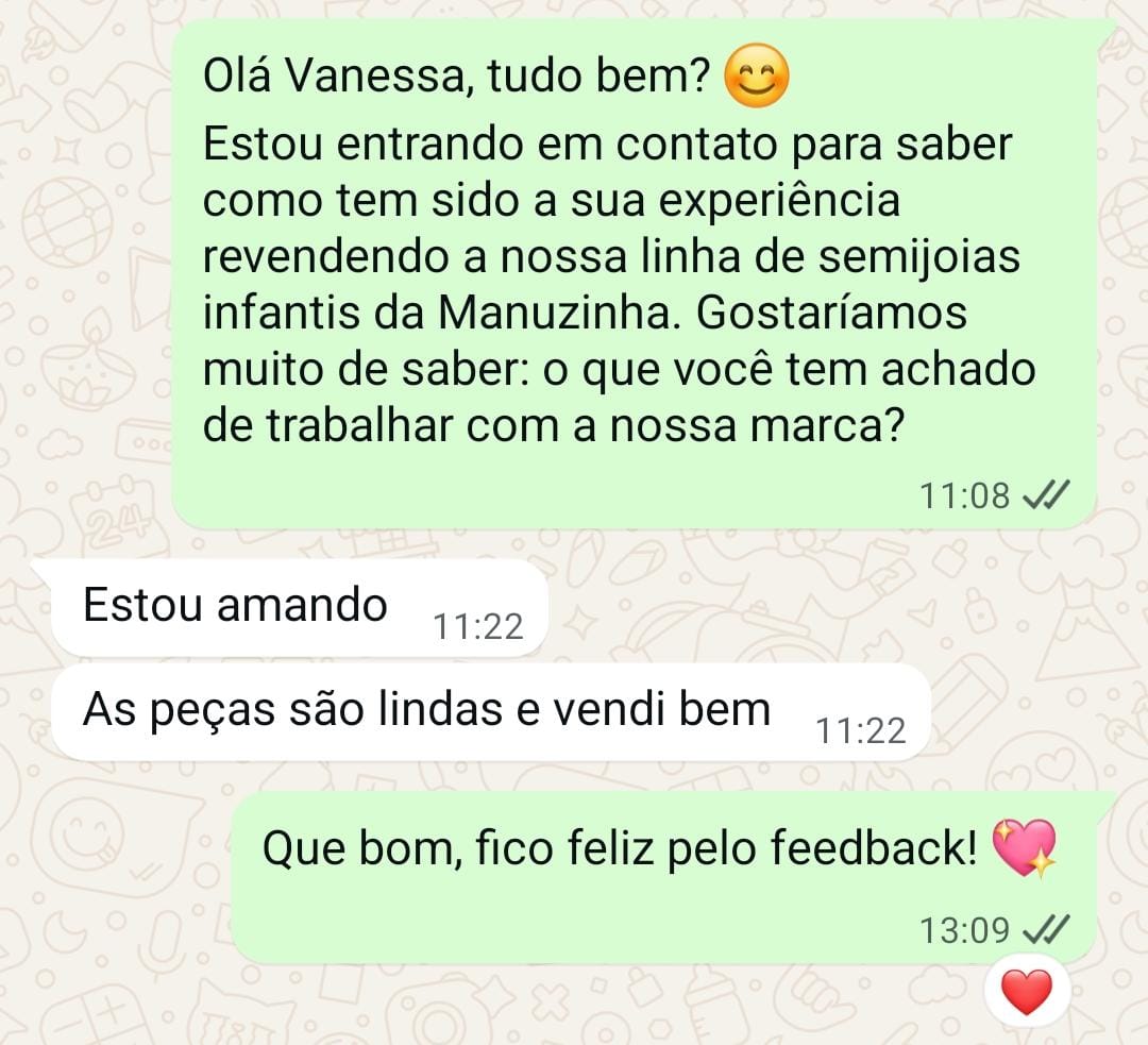 Venda mínima: Solicitamos um mínimo de vendas de R$ 500,00 para continuar a parceria;